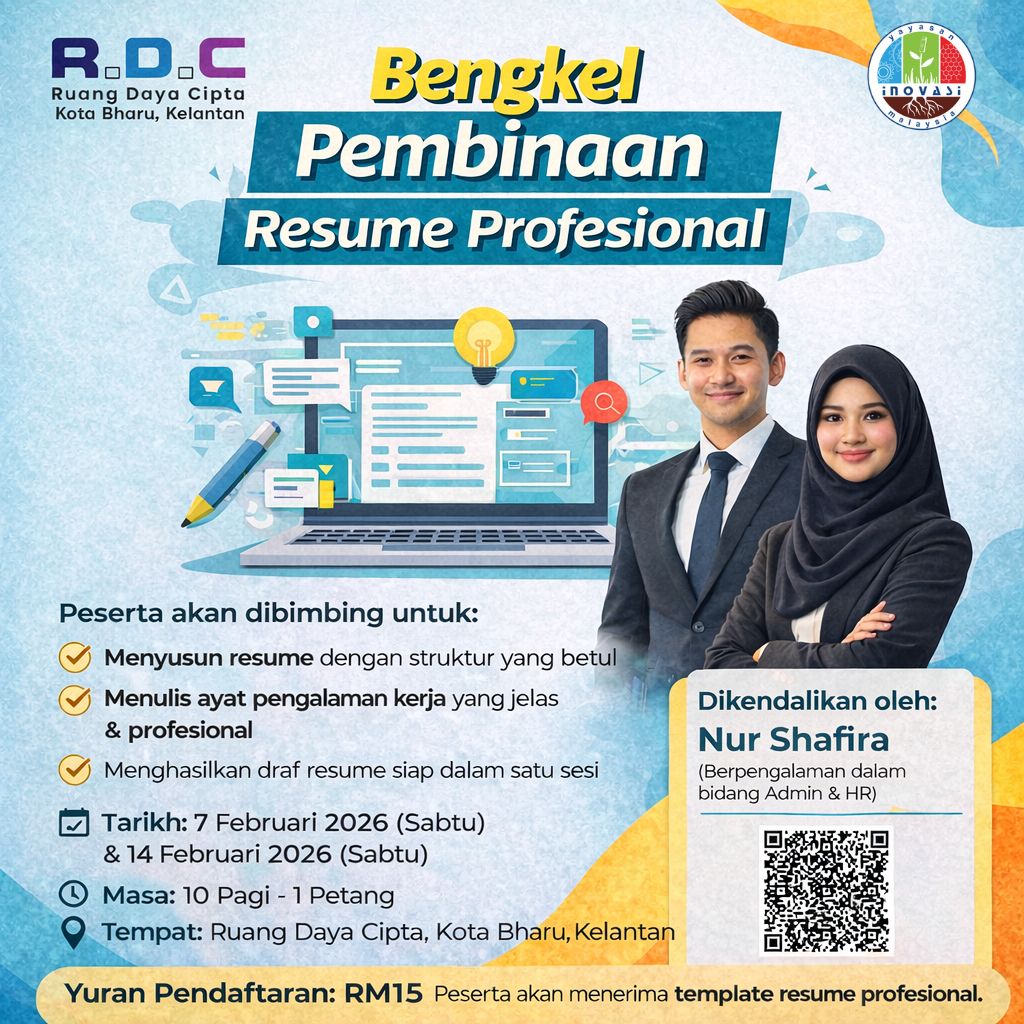 Bengkel Pembinaan Resume Profesional memberi pendedahan dan bimbingan kepada peserta dalam menyediakan resume yang kemas, jelas dan profesional. Peserta dibimbing menyusun struktur resume yang betul, menulis ayat pengalaman kerja dengan lebih efektif serta menghasilkan draf resume siap dalam satu sesi sebagai persediaan menghadapi dunia pekerjaan dan temuduga. Gambar bengkel belum dimuatnaik. |